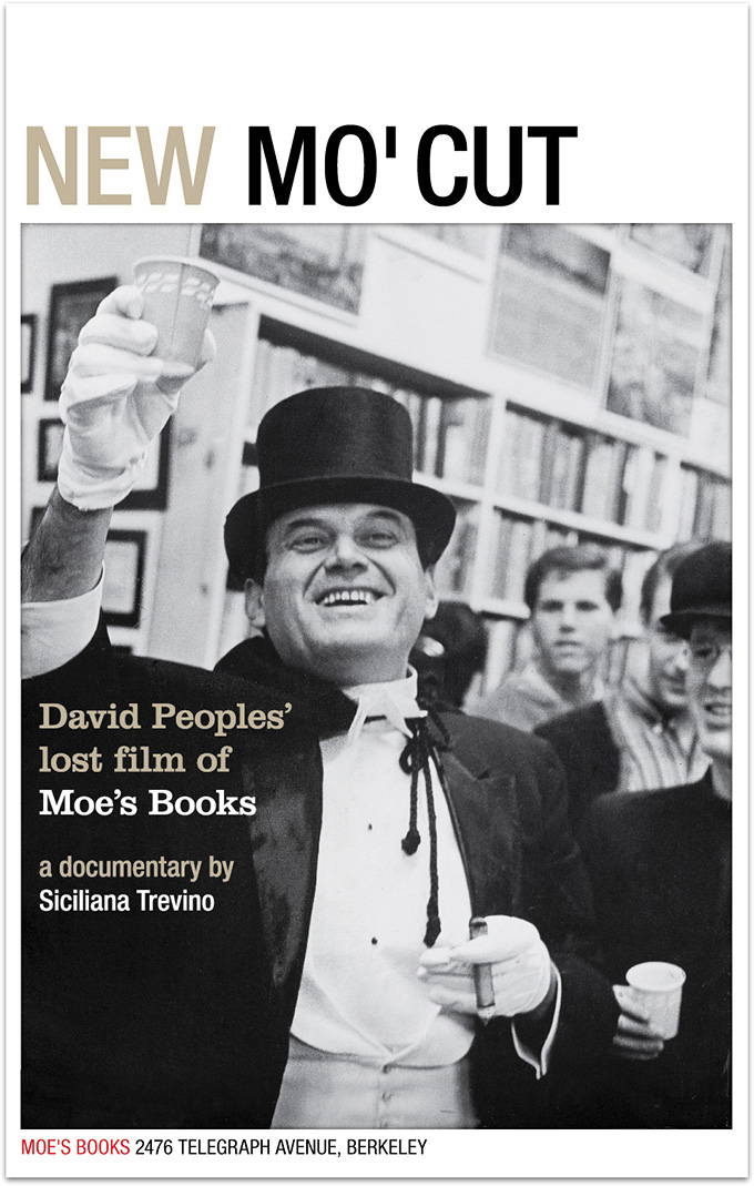 New Mo’ Cut: David Peoples lost film of Moe’s Books is a short documentary chronicling the surprising discovery at the Berkeley dump of a 16mm film of Moe Moskowitz at the opening night party for his legendary Telegraph Avenue bookstore in 1965. Kevin Laird, a recycler working for Urban Ore, found the film canister and managed to deliver it into the hands of Moe’s daughter Doris who didn’t know of its existence or origin. Soon after the film is digitized and put online, Doris discovers the filmmaker is Oscar-nominated screenwriter David Peoples. The two-minute, forty-six second workprint is a time capsule of Berkeley and a peek into Peoples’ early documentary film explorations before gaining notoriety as a screenwriter rewriting Blade Runner, earning an Oscar nomination forUnforgiven and co-writing 12 Monkeys with his wife, screenwriter Janet Peoples. New Mo’ Cut:David Peoples lost film of Moe’s Books recalls one of Telegraph’s larger than life characters, while musing on books, filmmaking and reclaiming history from the waste stream.